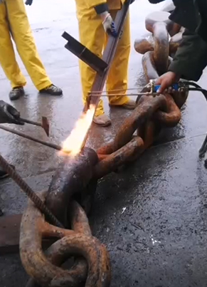 5、打開連接鏈環(huán),在它的后端鏈怎么迅速的解開錨鏈絞花環(huán)連上送出纜,送出纜的另一頭固定在纜樁上。